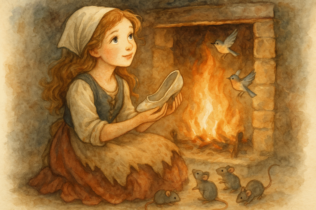 → Kopciuszek pracowała od świtu do zmroku – sprzątała, gotowała, prała, szyła. Wszystko musiało być IDEALNE (NIEBIESKI). W końcu była tak wyczerpana, że płakała przy kominku – ale nawet wtedy nie prosiła o pomoc.