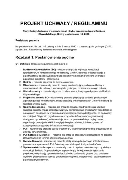 Szablon dla Urzędów Gminy jako wzór do opracowania własnego regulaminu lub projektu uchwały dotyczącej Budżetów Obywatelskich z użyciem platformy Cyberspace i mObywatel.